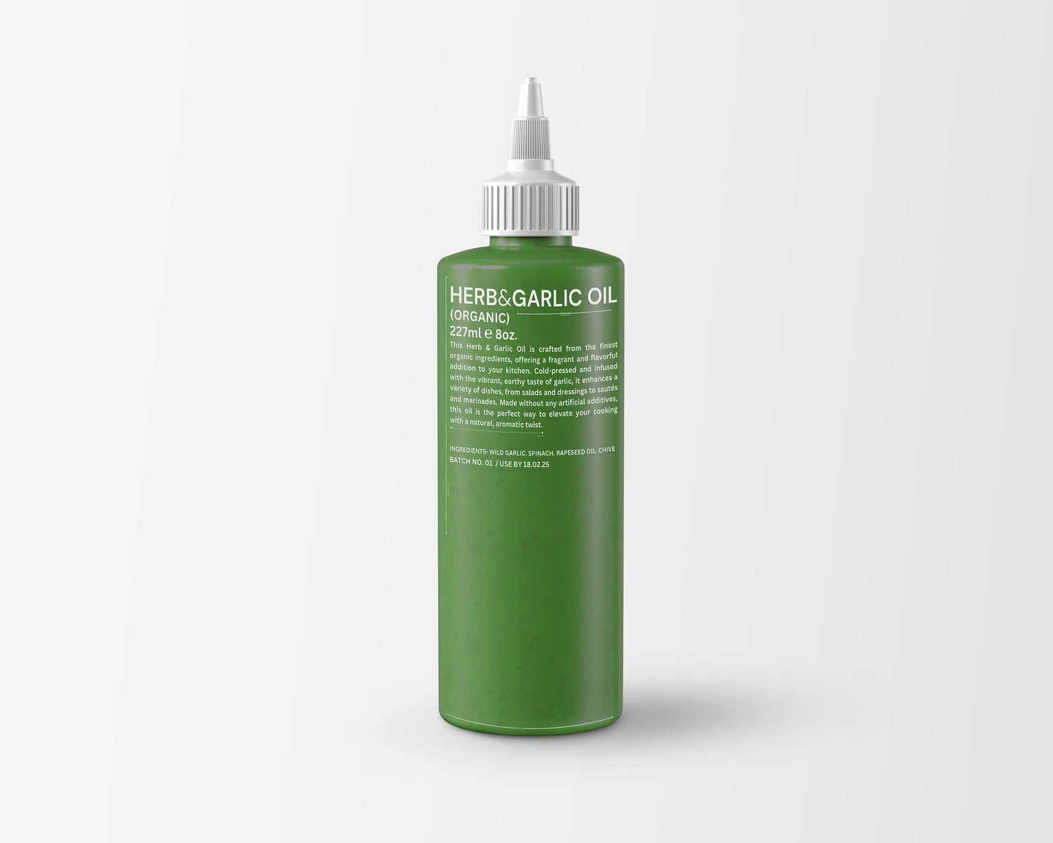 "Infused with the fresh essence of wild garlic and vibrant herbs, our oil elevates every dish with natural flavor and aromatic goodness."